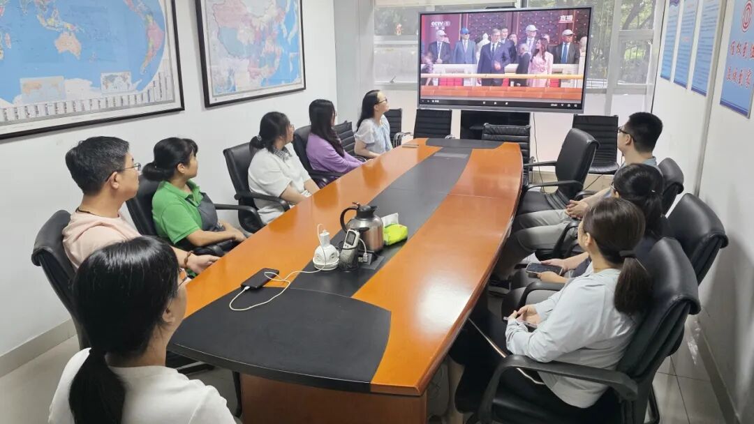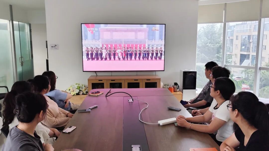 观看过程中,从徒步方队整齐划一、气势磅礴的行进,到装甲方队铁甲生辉、威武雄壮的阵列,再到空中梯队战鹰列阵、翱翔苍穹的英姿,每一个画面都让员工们深感震撼。会议室内不时自发响起热烈掌声,大家为祖国繁荣昌盛和人民军队的强大威武而感到无比骄傲,深切感受到了国家日益增强的综合实力与民族复兴的坚定底气。